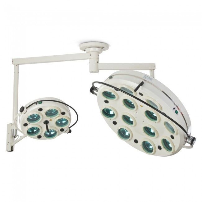 Светильник хирургический ZMD (5+12 ламп)- этот потолочный двухкупольный светильник применяется для освещения рабочего поля при хирургических операциях и диагностических обследованиях практически во всех областях современной медицины.