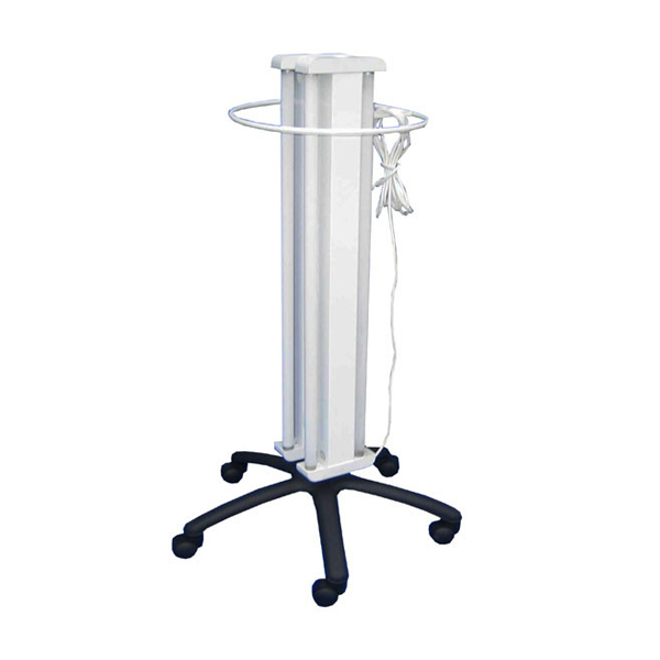 • Пять поворотных колес в основании облучателя позволяют легко перемещать его в помещениях