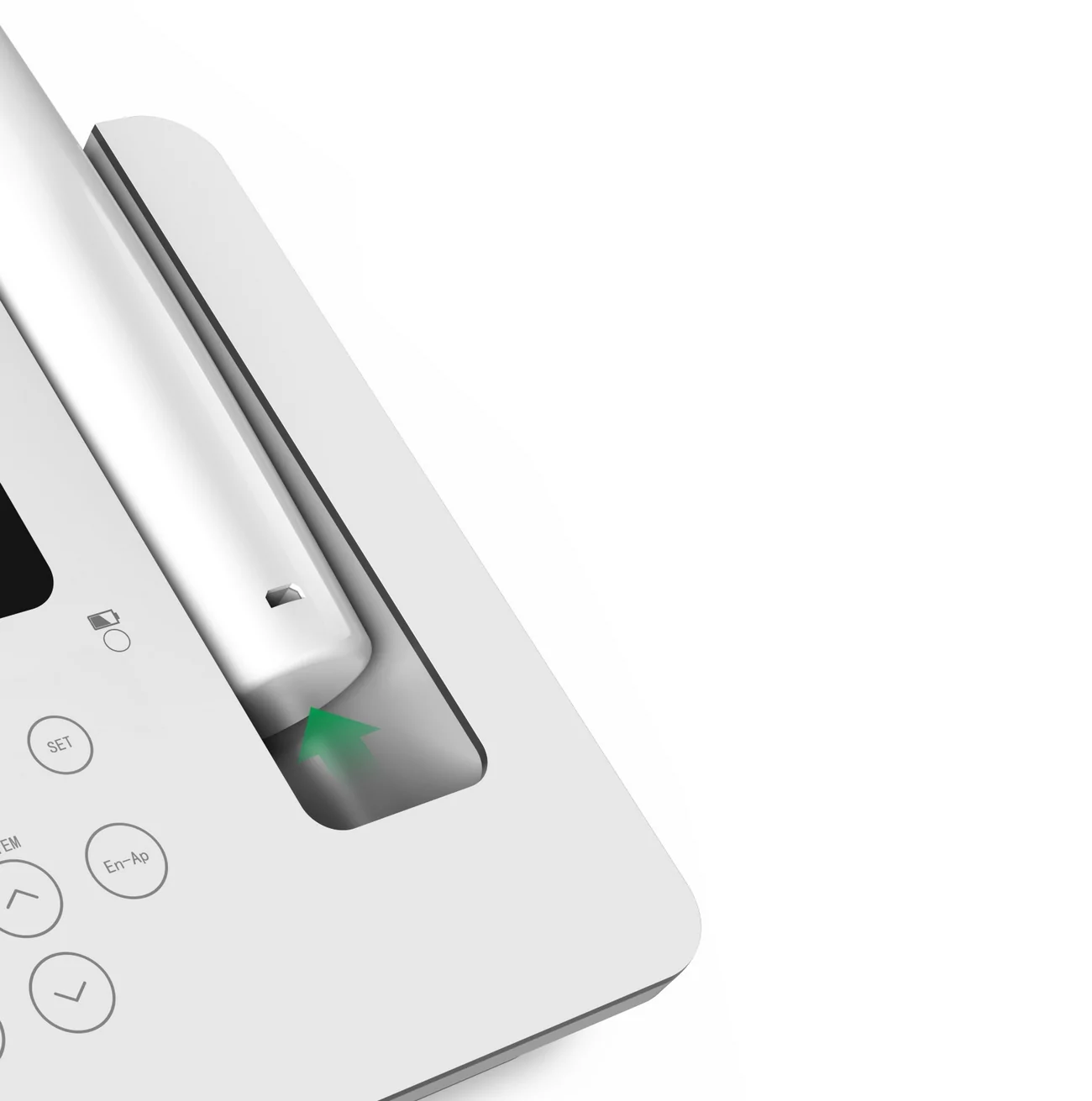 Режим «Apex» Режим апекслокатора можно использовать отдельно, нажав кнопку «En-Ap». После того, как файлодержатель, измерительный провод и загубник установлены, стандартный протокол эндодонтического осмотра производится путём погружения файла в корневой канал, чтобы точно измерить рабочую длину корневого канала. |