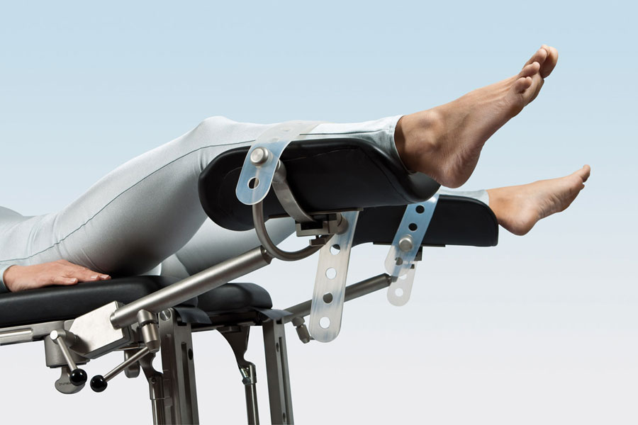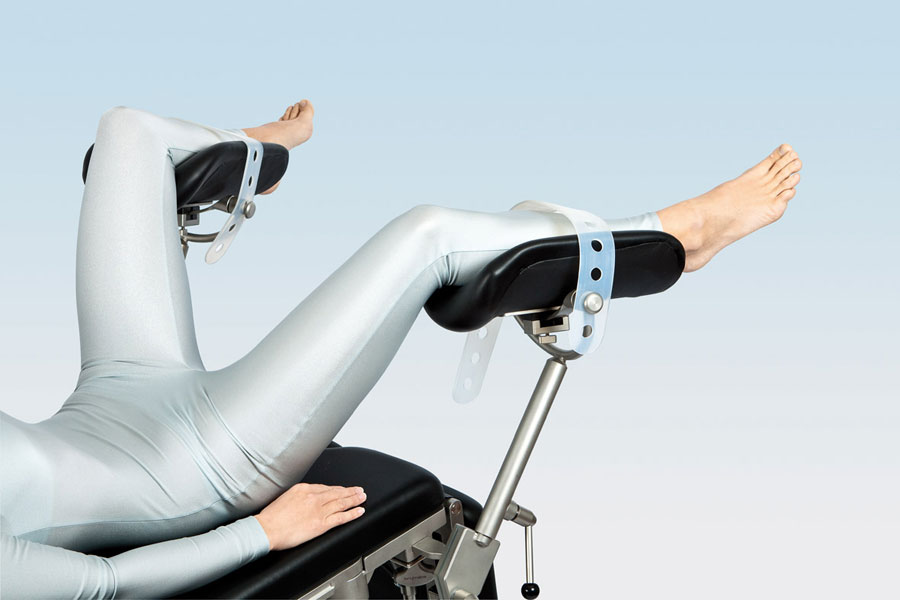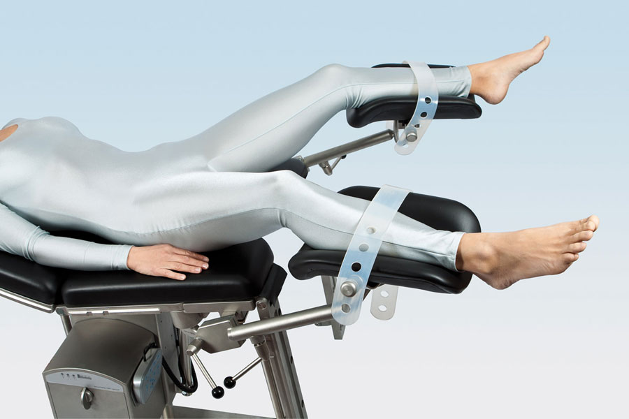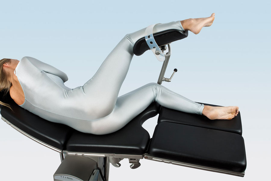 Держатель для ног с возможностью простой регулировки, мягкой обивкой и эргономичной формой подходят для амбулаторной диагностики и гинекологических операций. Угол и высота регулируется шаровым шарниром с зажимами. Блокировка снимается при помощи специальной ручки, держатель выставляется в нужную позицию и снова блокируется. Благодаря гигиеничной дезинфицируемой обивке с закругленными краями уменьшается сдавливание уязвимых мест, эластичный силиконовый ремень фиксирует ноги без излишнего стягивания, сохраняя «трехмерную» подвижность.