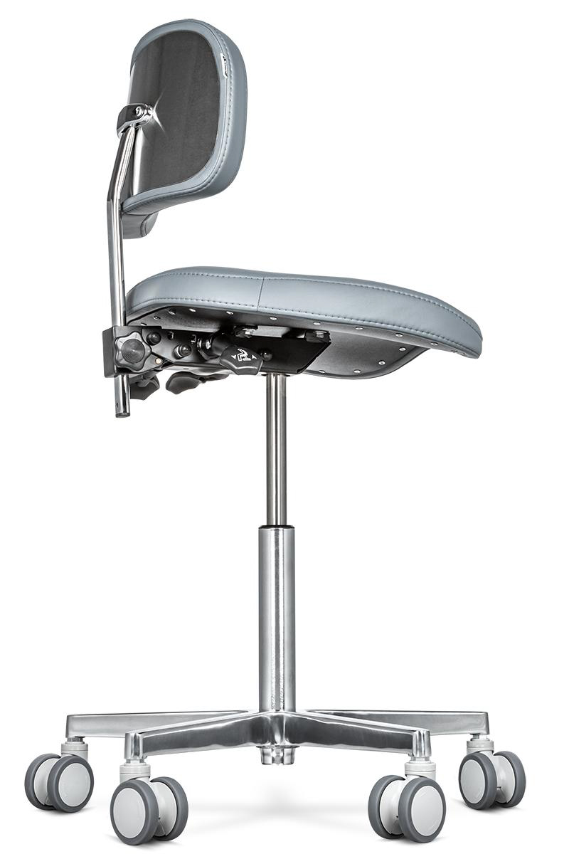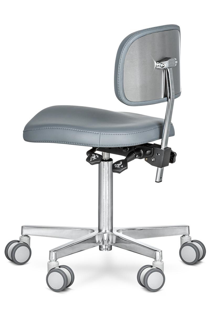 Стул ассистента MERCURY B оснащён возможностью настраивать его положение в зависимости от индивидуальных особенностей человека. В первую очередь это касается спинки, которая может отклоняться на довольно большой угол. Также есть возможность регулировать высоту кресла по вертикали, в следствие чего стул подойдёт для людей разного роста. Соединительные детали выполнены из нержавеющей стали, а при производстве сиденья используется литьевая пенополиуретановая смесь, которая позволит ему держать форму более 5 лет