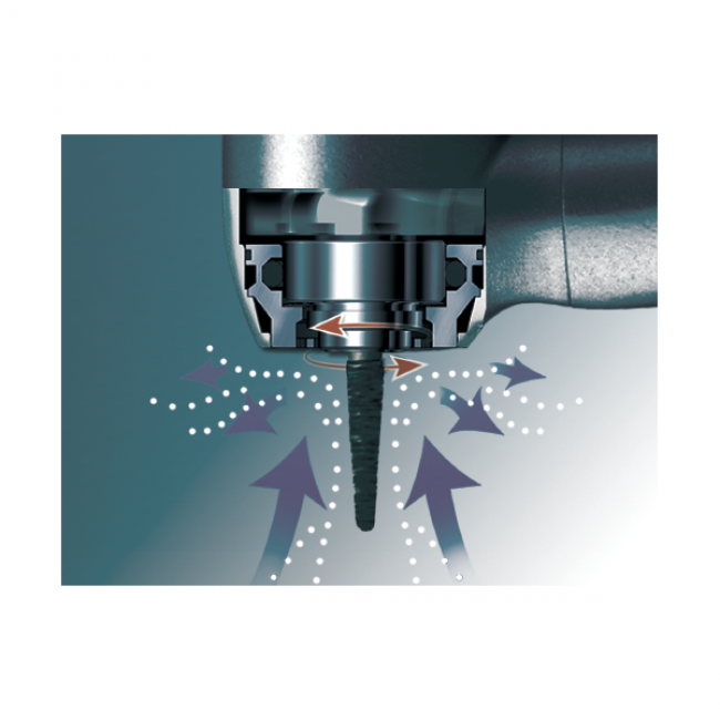 6. Эргономичный изогнутый корпус - идеальный угол наклона головки в любом обрабатываемом месте Клапан регулировки избыточного давления – защищает наконечник от достижения чрезмерно высокой скорости вращения
