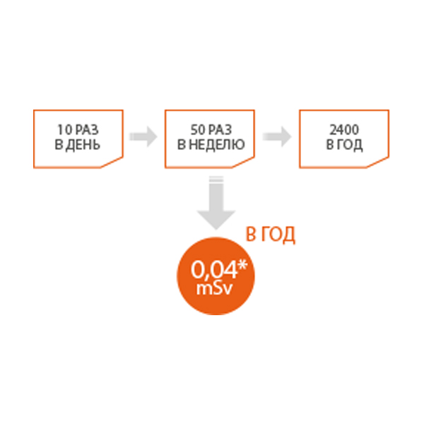 Количество снимков * При допустимой норме в год для оператора 5 mSv