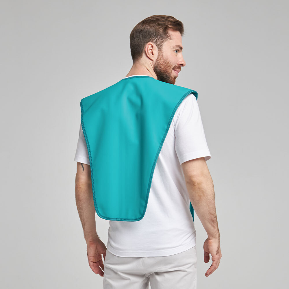 В отличие от стандартного стоматологического фартука имеет более удлиненную спинку для защиты позвоночника.
