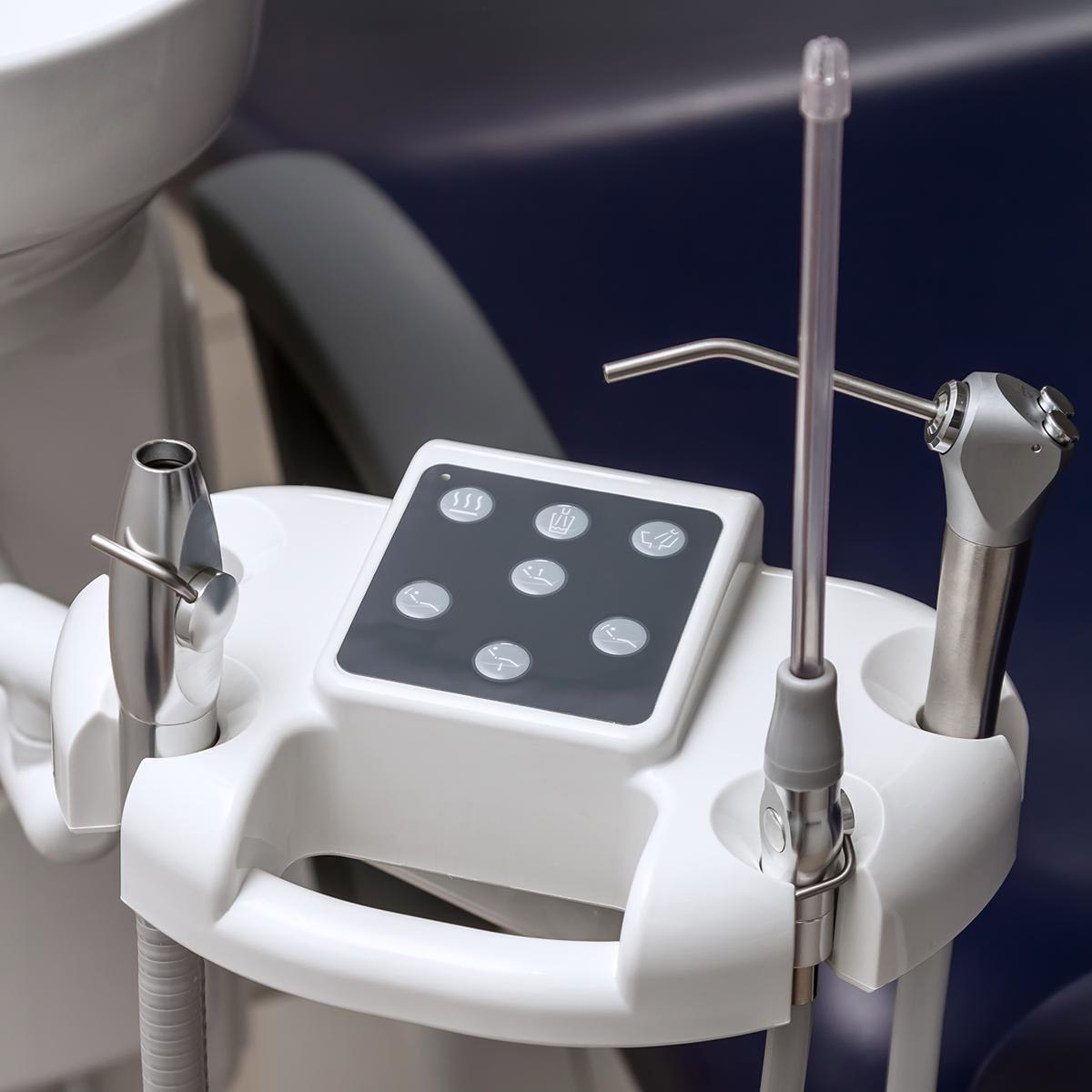 Блок врача верхней подачи на 5 инструментов с пультом управления всеми функциями кресла одной рукой.