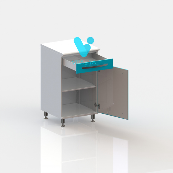 Тумба медицинская Т1 на хромированных ножках с ящиком ЛЮКС, одностворчатая металлическая цельносварная